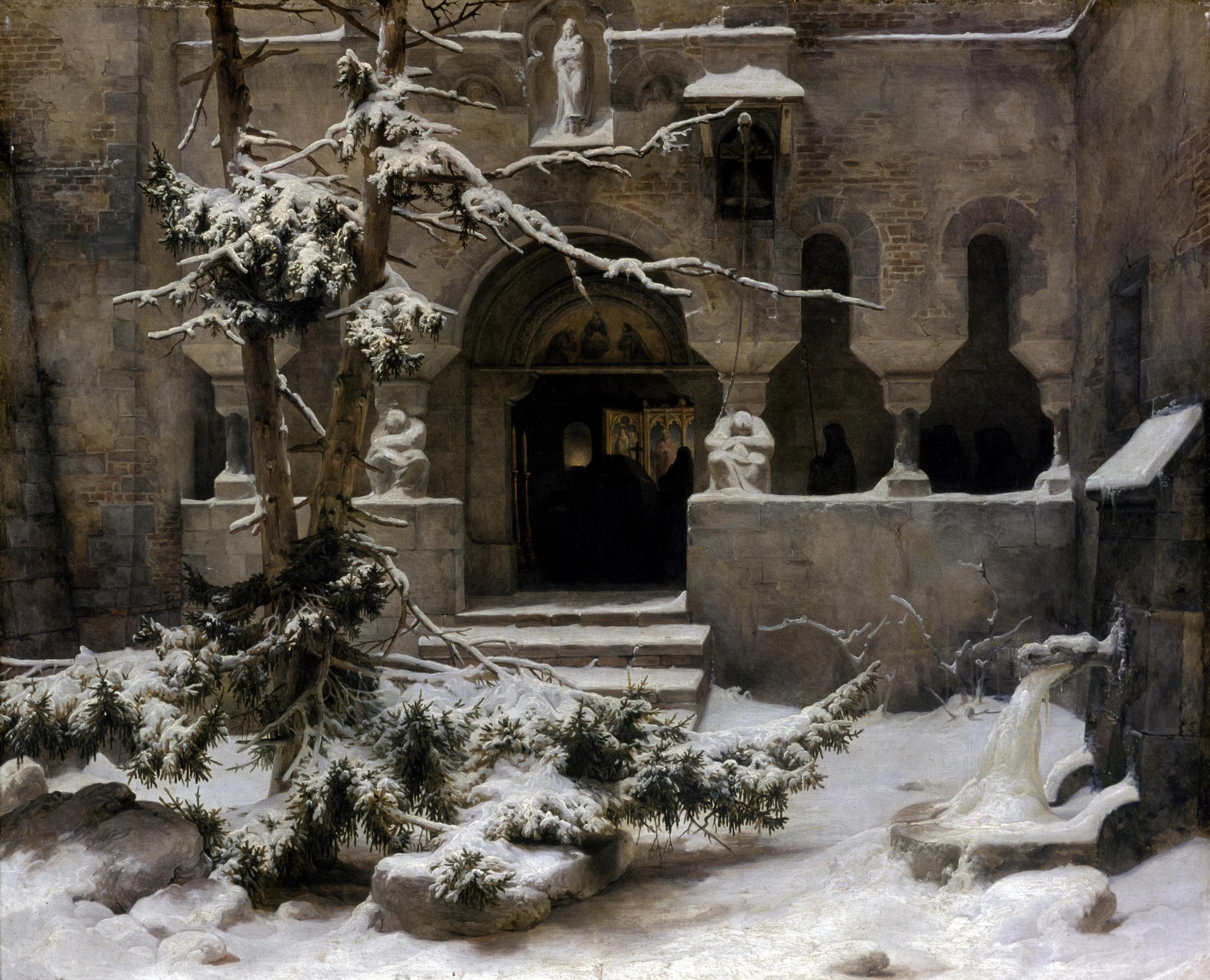 Monastery Courtyard in Snow | Carl Friedrich Lessing | 1829