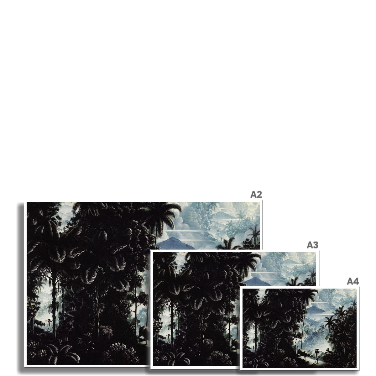 Walter Spies’ The Landscape and Her Children' (1939) is a highly refined and poetic vision of the tropical world, in which human figures and animals are integrated seamlessly into a luxuriant, carefully ordered jungle landscape. Executed in the artist’s distinctive style of magical realism, the painting combines precise naturalistic detail with an idealized, almost dreamlike atmosphere, lending the scene a sense of timeless harmony and quiet contemplation. More than a simple depiction of place, the work expresses Spies’ profound engagement with the culture and environment of Southeast Asia, presenting nature as a serene, nurturing realm and humanity as one of its integral elements.