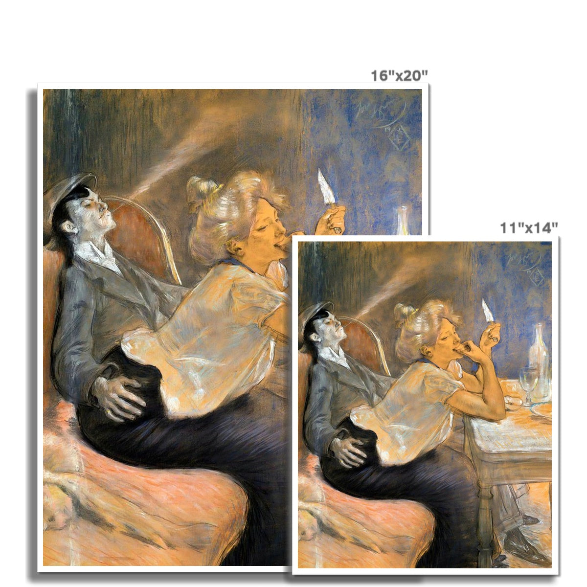 The Apache’s Supper (1901) by Louis Legrand (French, 1863–1951) depicts a scene from Parisian nightlife at the turn of the 20th century, inspired by the popular fascination with the so-called “Apaches,” figures associated with the city’s bohemian and marginal worlds. A woman sits at a café table in thoughtful study, while her companion leans back in a languid, possessive pose. Legrand’s fluid brushwork and warm, muted tones create a sense of intimacy and theatricality, turning an everyday interior into a psychologically charged moment. The composition reflects the era’s interest in modern urban life, relationships, and the ambiguous boundaries between performance and reality.