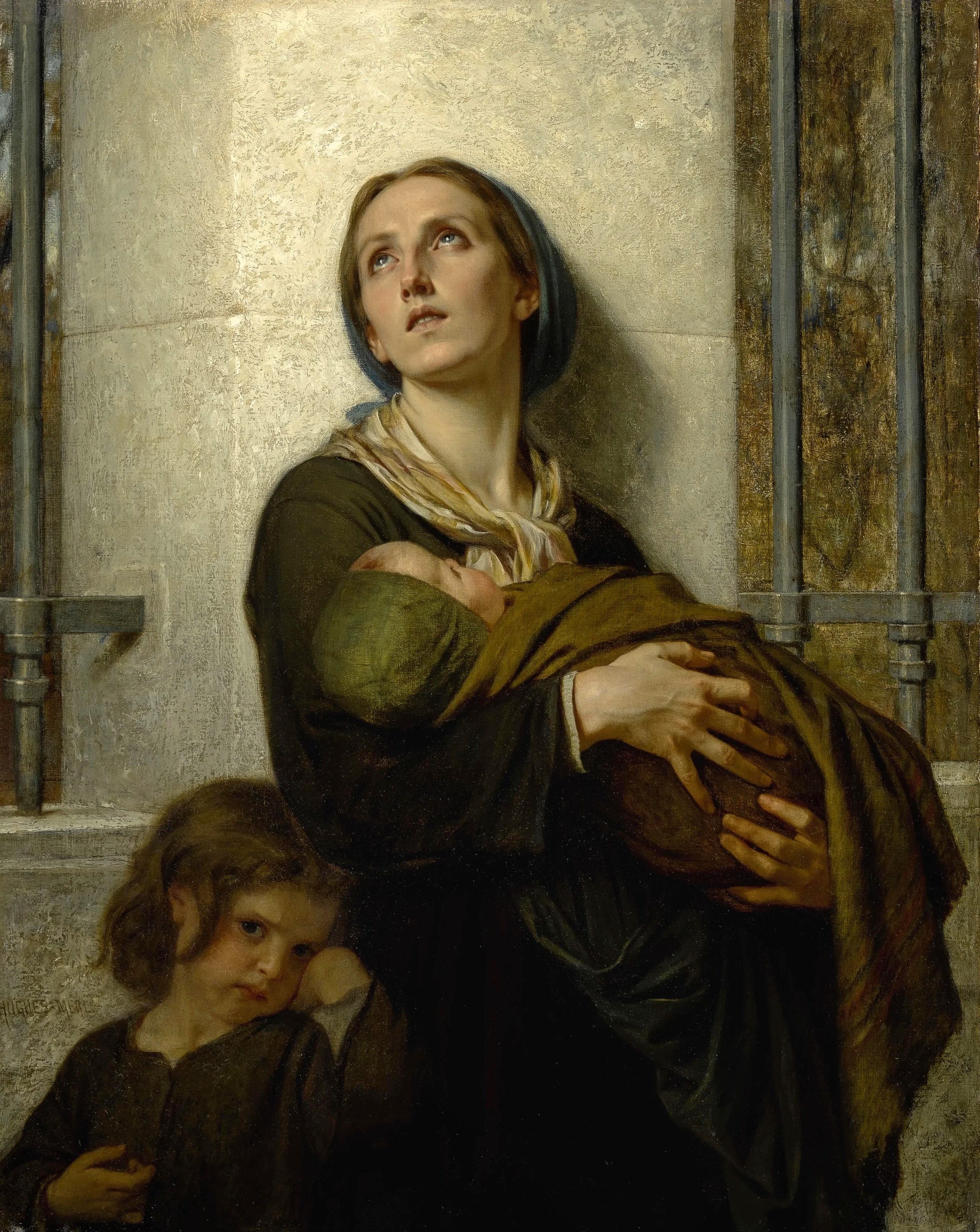 The Forgotten (1850) by Hugues Merle is a quietly heartbreaking scene of poverty and neglect. A weary mother gazes upward in silent despair as she cradles a sleeping infant, while an older child slumps at her side, overlooked and exhausted. Muted tones and soft light heighten the sense of abandonment, turning the moment into a tender yet painful meditation on suffering, endurance, and those society leaves unseen.